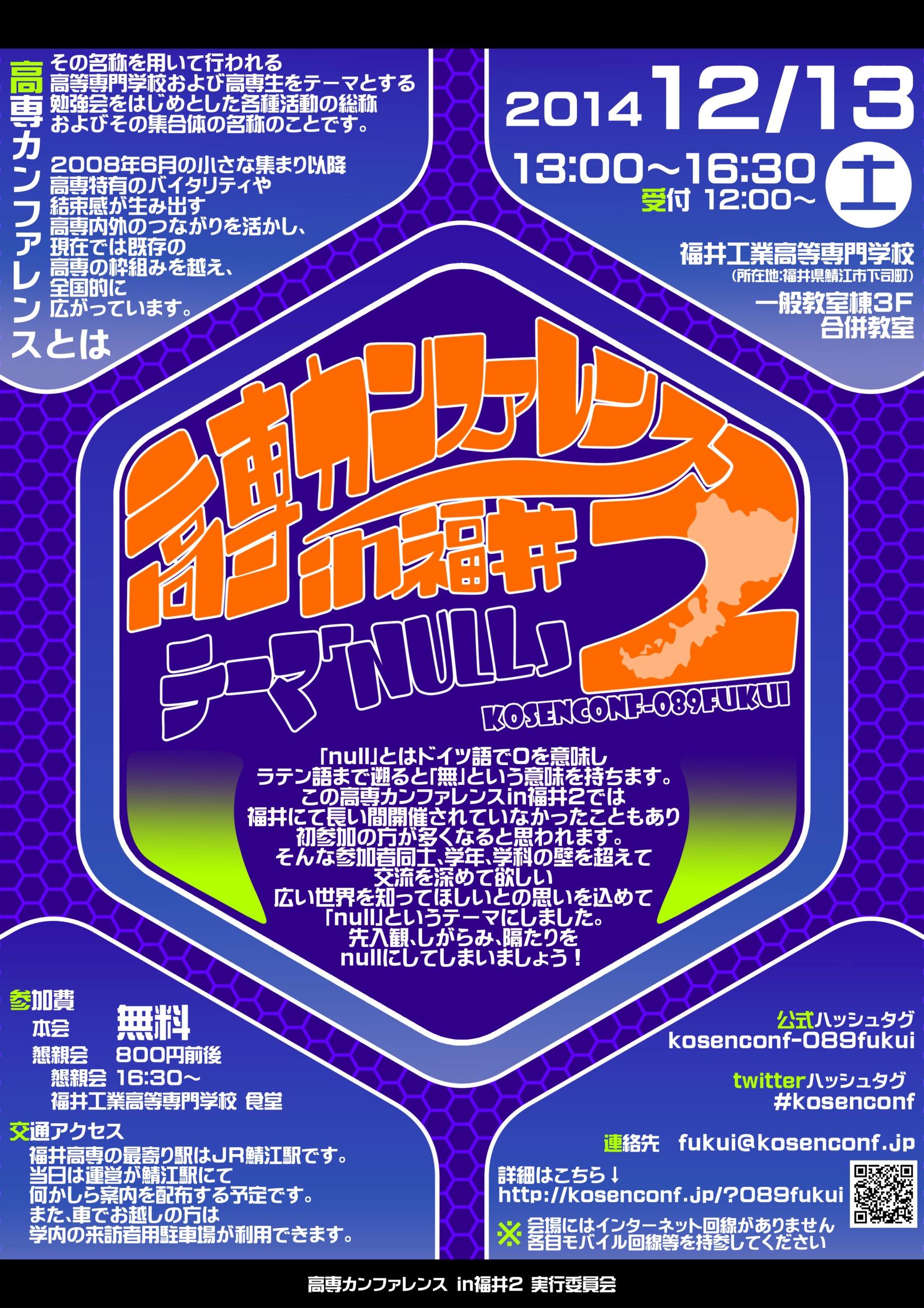 - 高専カンファレンス in 福井2 代表メールアドレスは fukui[at]kosenconf.jp です。なんでも聞いてね!([at]を@に変更してください)