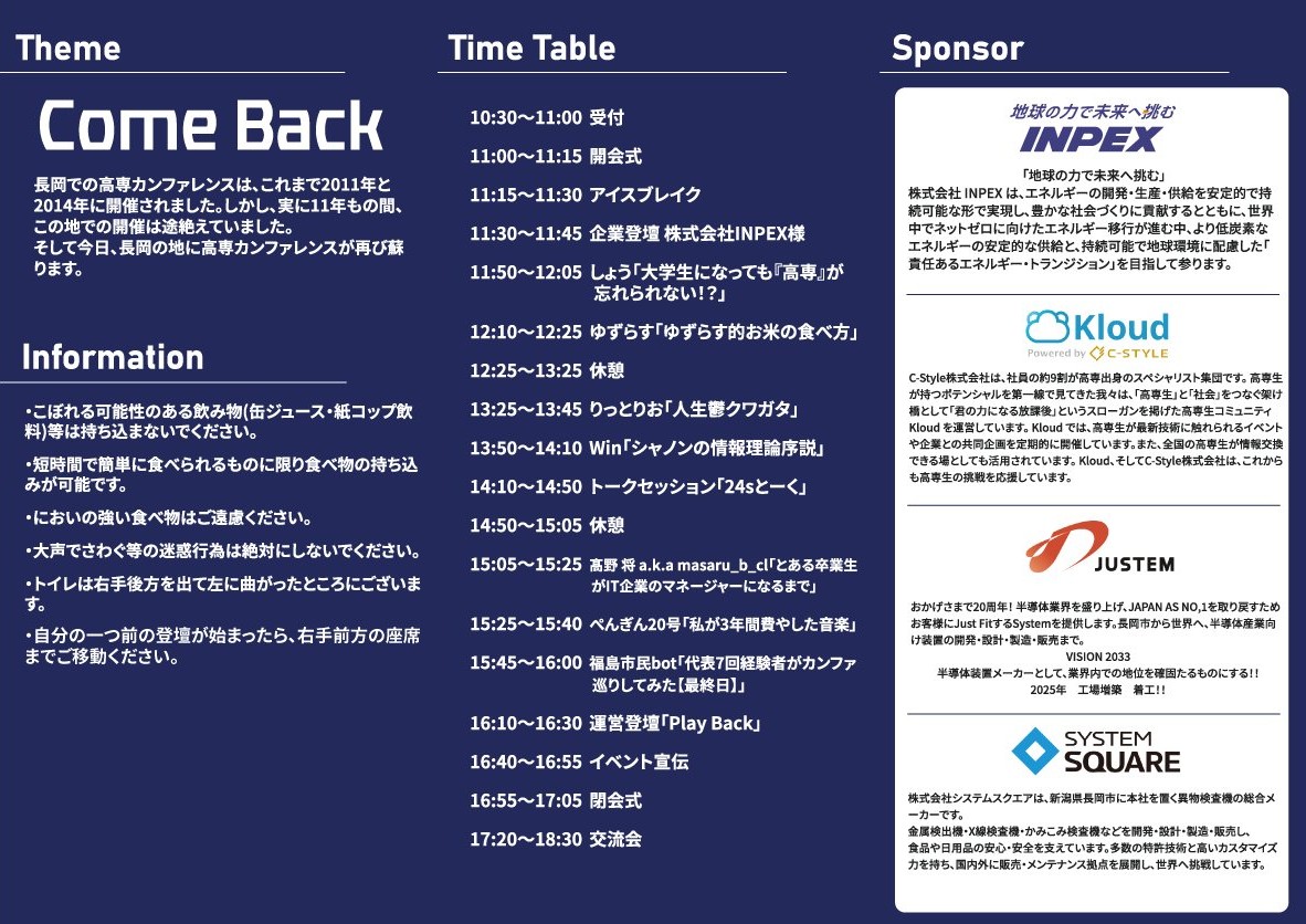 2025年、この地に高専カンファレンスを蘇らせたいという思いでテーマを「Come Back」としました。