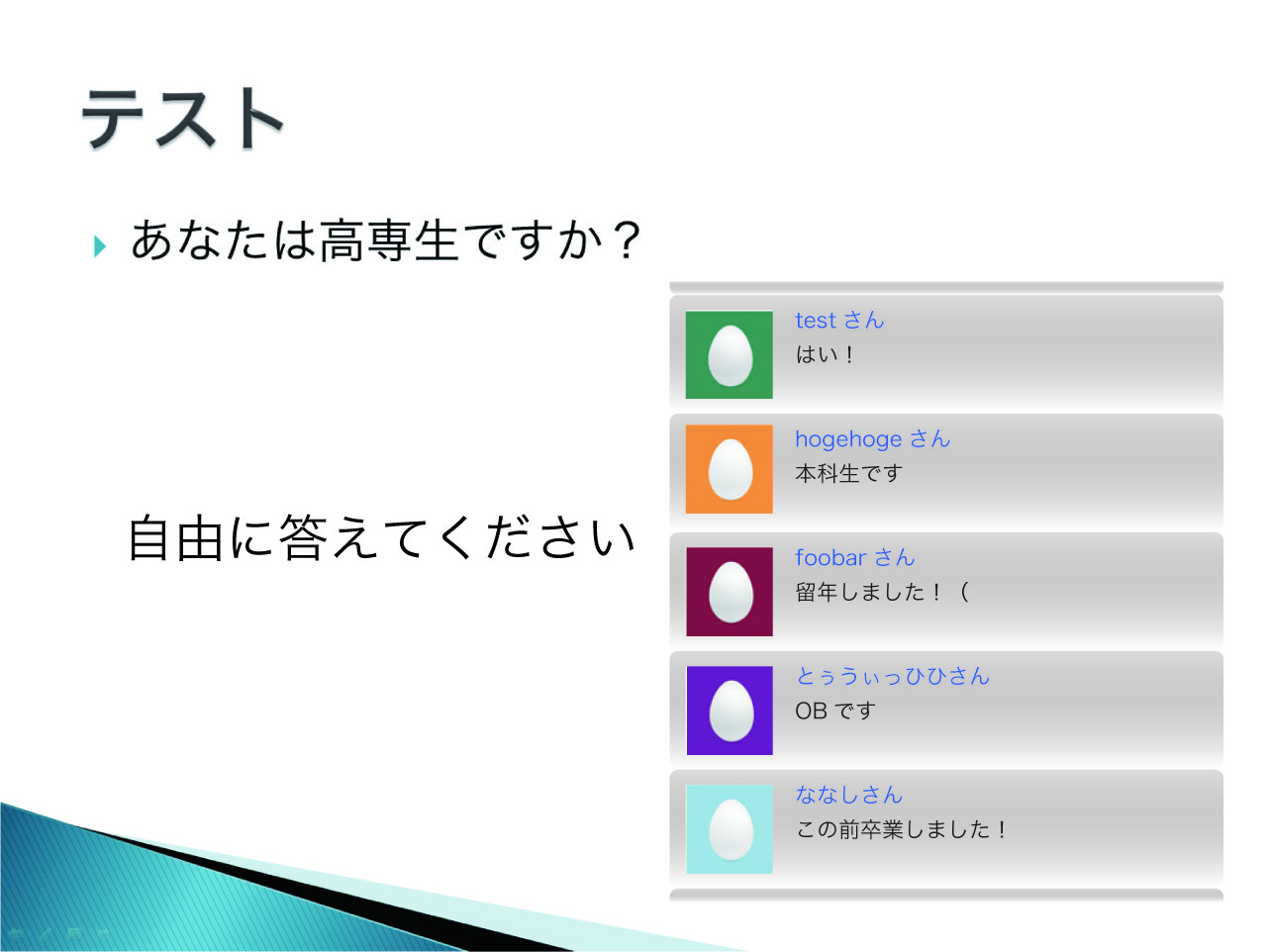 会場の声を、スライドにリアルタイムで反映するシステムを提供いたします。