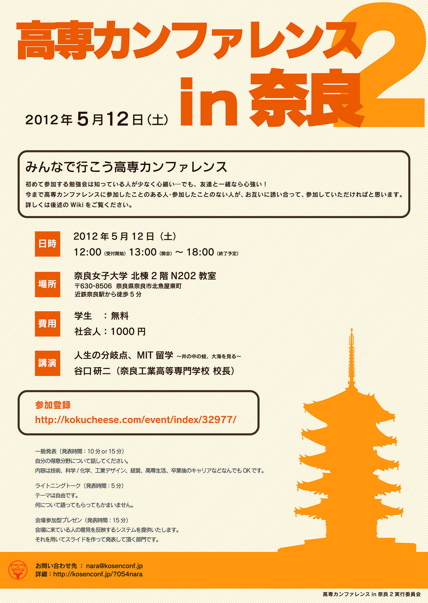 - nara[at]kosenconf.jp ([at]を@に変更してください)