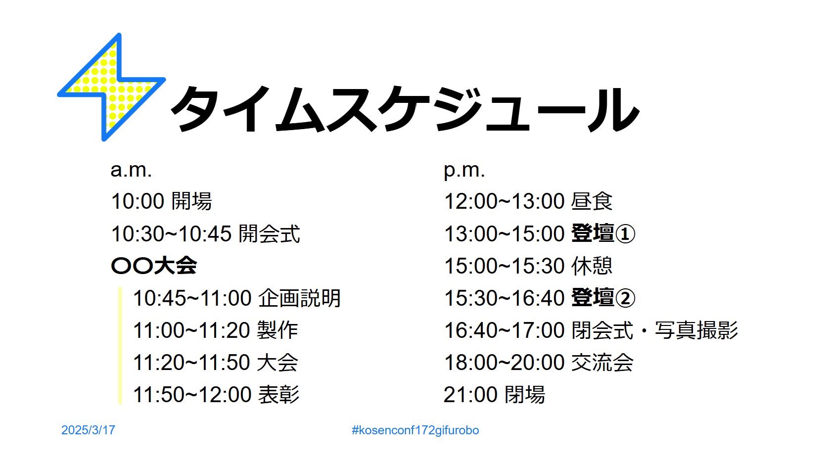 今回のテーマはロボットができるまでという事でロボコンも、それ以外のモノづくりでも沢山学べるようなカンファレンスにしたいという願いが込められています