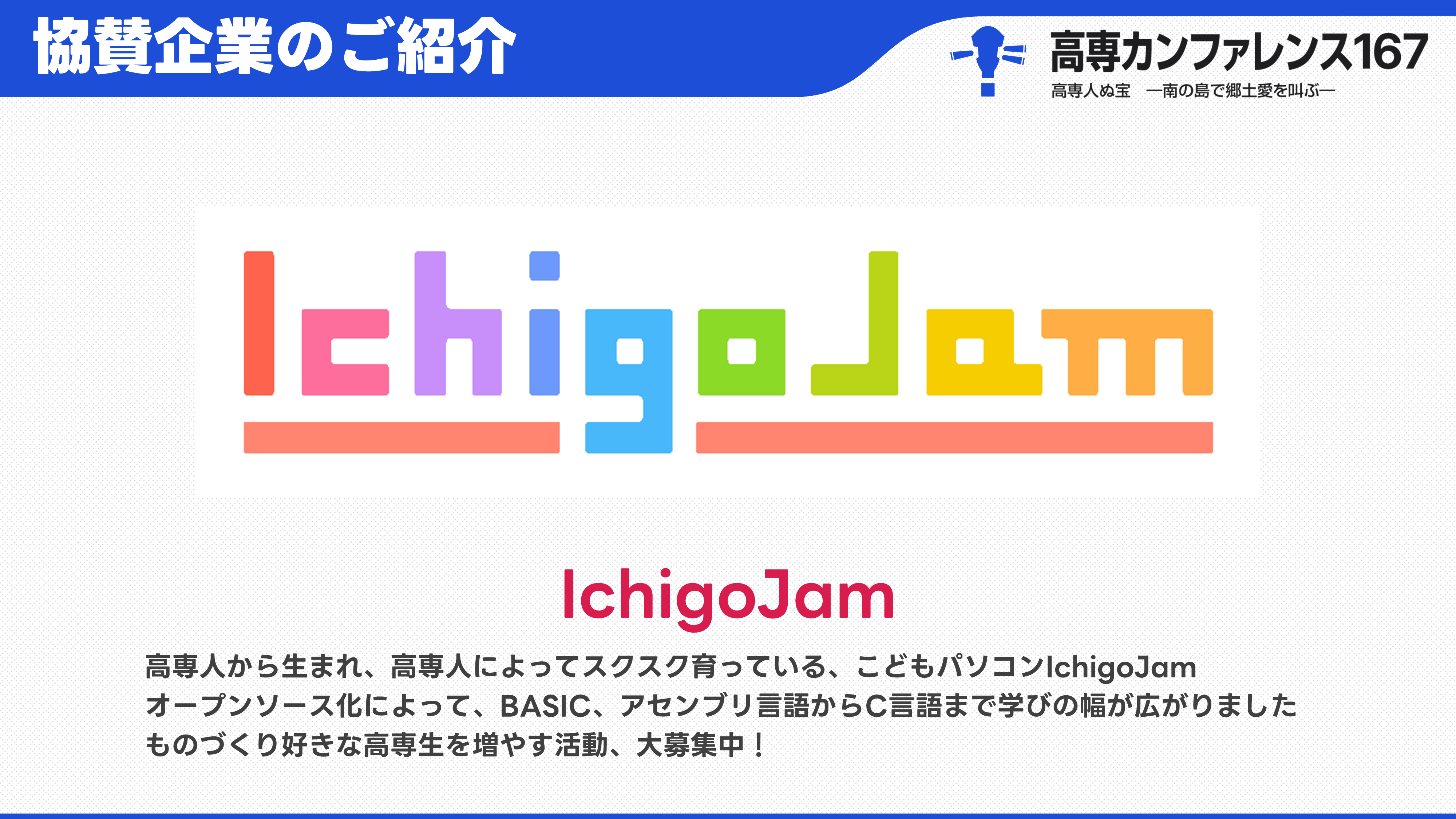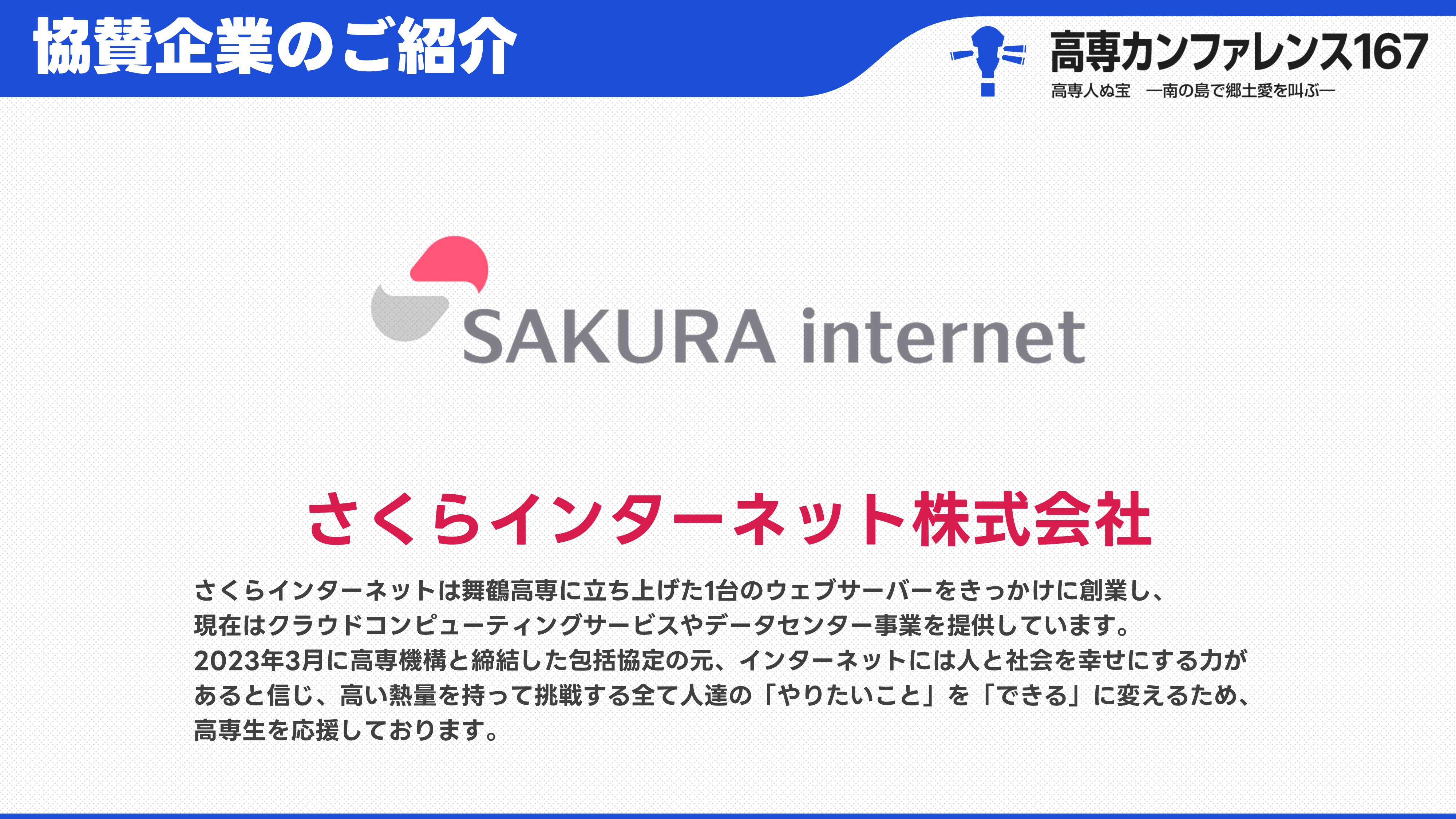 - 公式X :@kosenconf167