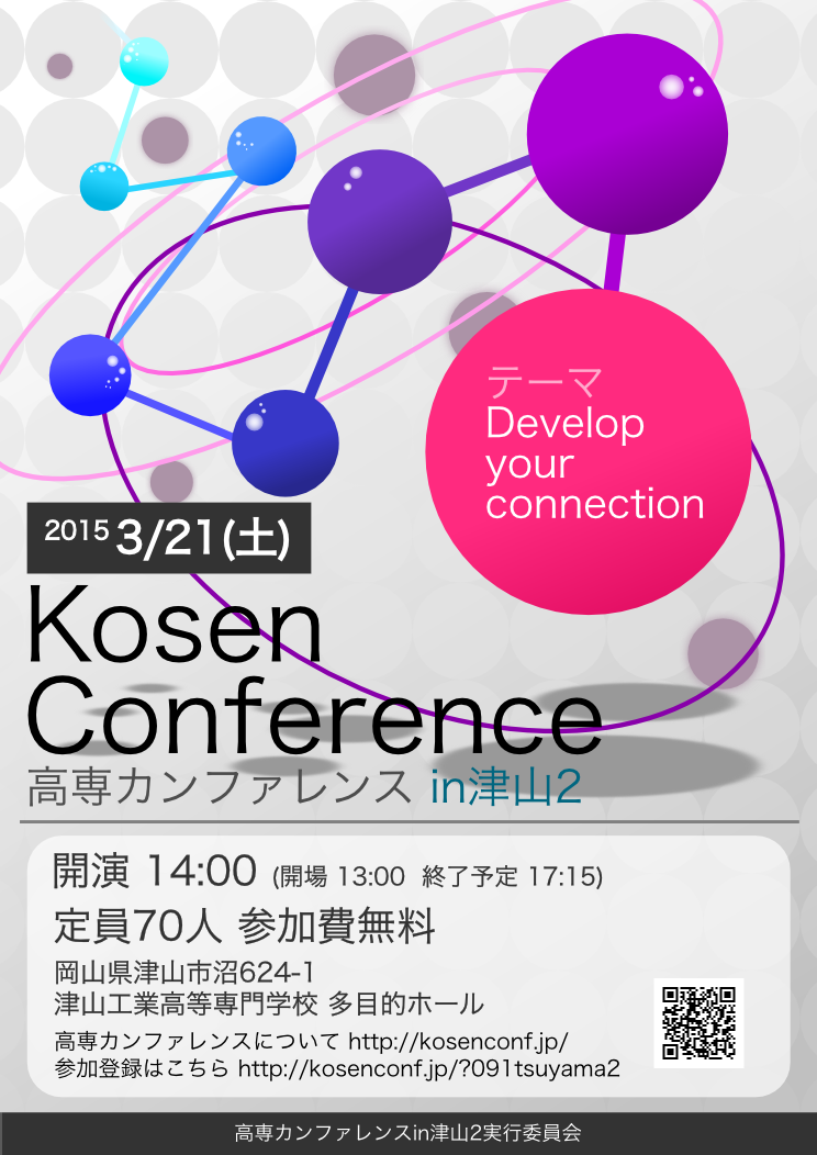 - 場所:津山工業高等専門学校 多目的ホール(岡山県津山市沼624-1)