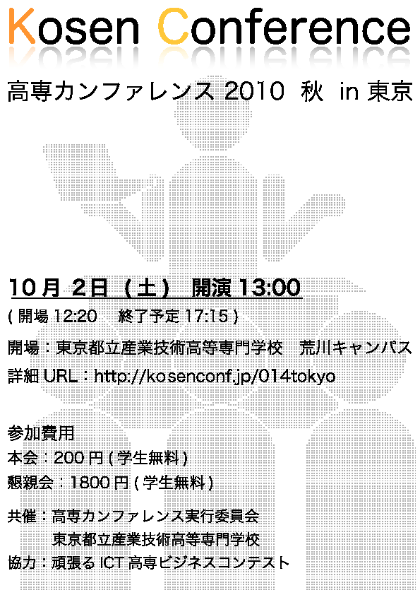 「高専カンファレンス 2010秋 in 東京」へ参加する旨をお伝えください。