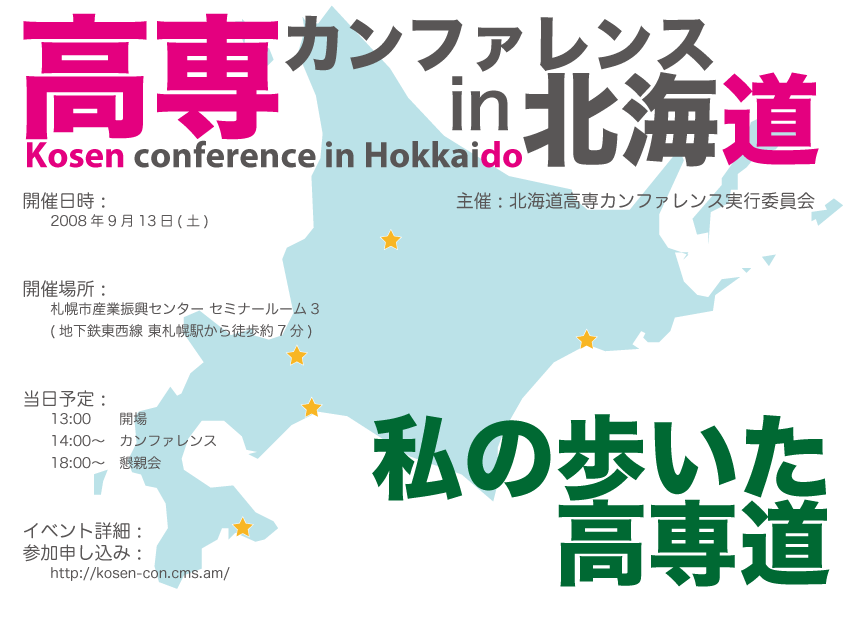 高専充実島「北海道」を舞台とする第2回高専カンファレンスは「私の歩んだ高専道」をテーマに現役高専生や卒業生それぞれの「高専道」を特集します.