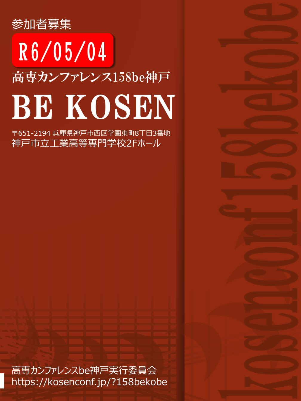 - 場所 : 神戸市立工業高等専門学校 本部棟2階大ホール(兵庫県神戸市西区学園東町8丁目3番地)