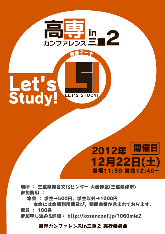 - テーマ(Let's Study!)に沿った発表内容を優先して選考します.