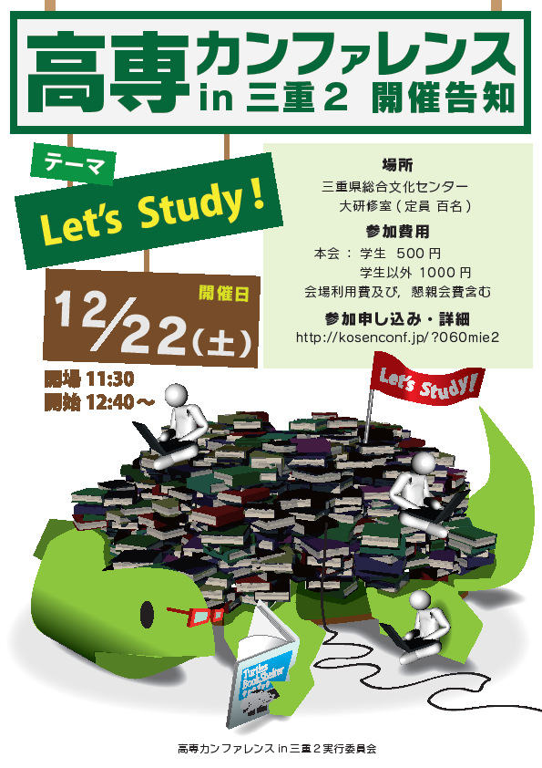 - 高専カンファレンスin三重2では当日スタッフを募集致します.当日スタッフで協力下さった方にはお礼として参加費を無料と致します.