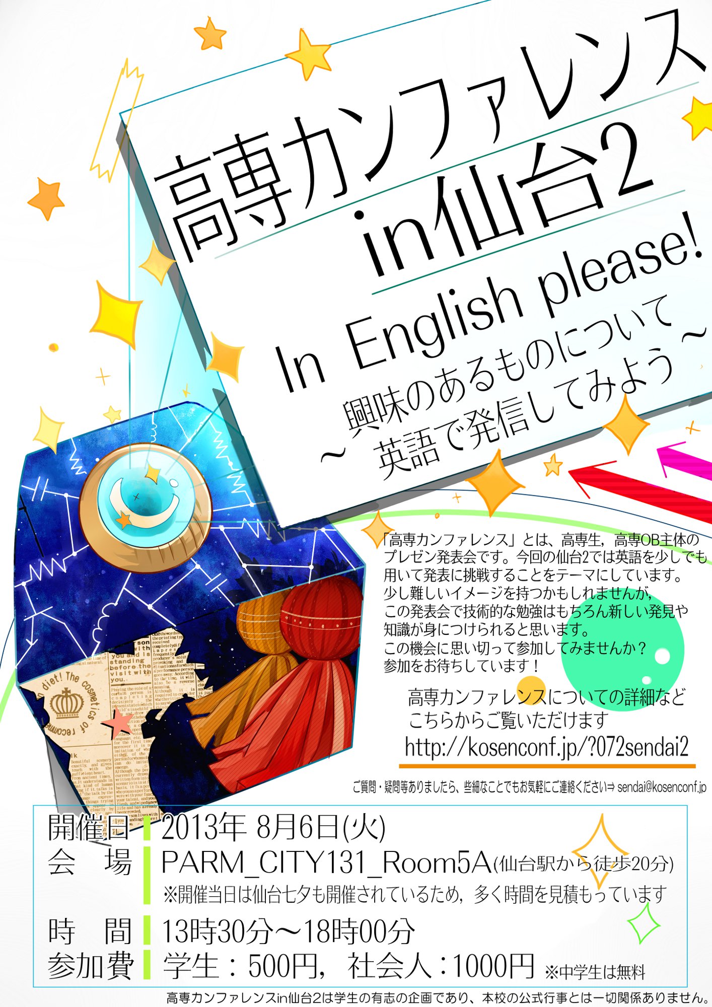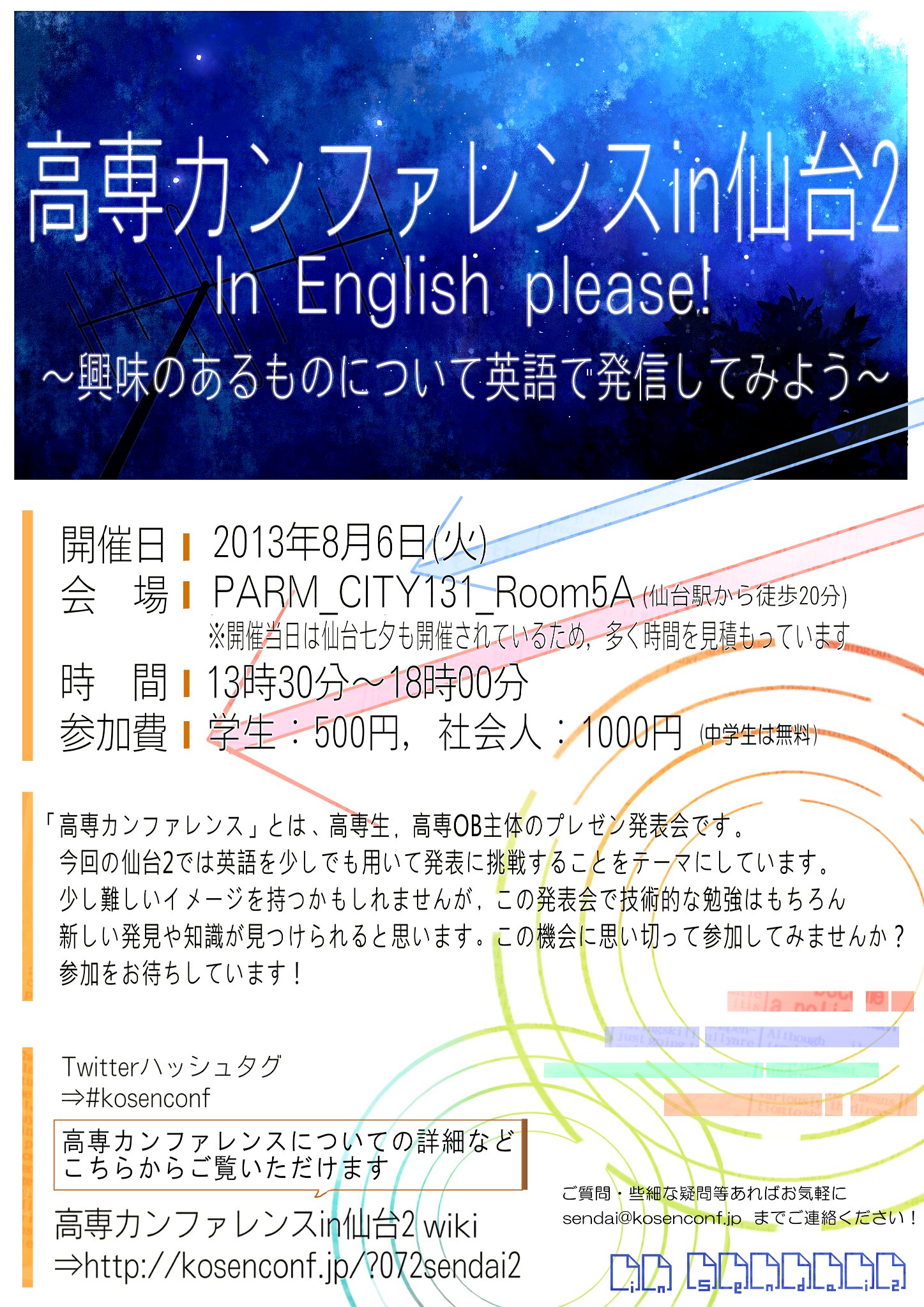 - ※sendai[at]kosenconf.jp ([at]を@に変更してください) に直接メールで問い合わせいただいても構いません。