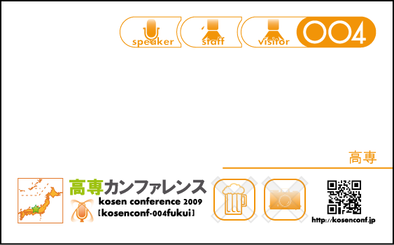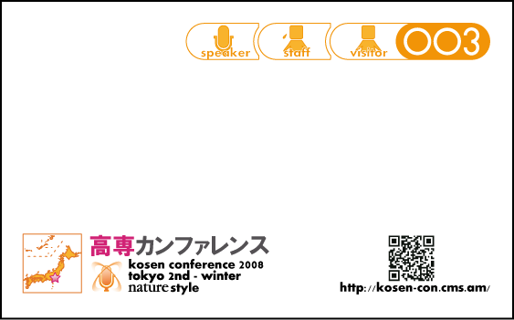 このことを考慮してkosenconf-009tokyoの名札は図案を決定しているので、kosenconf-009tokyo独自の情報は記載していない。