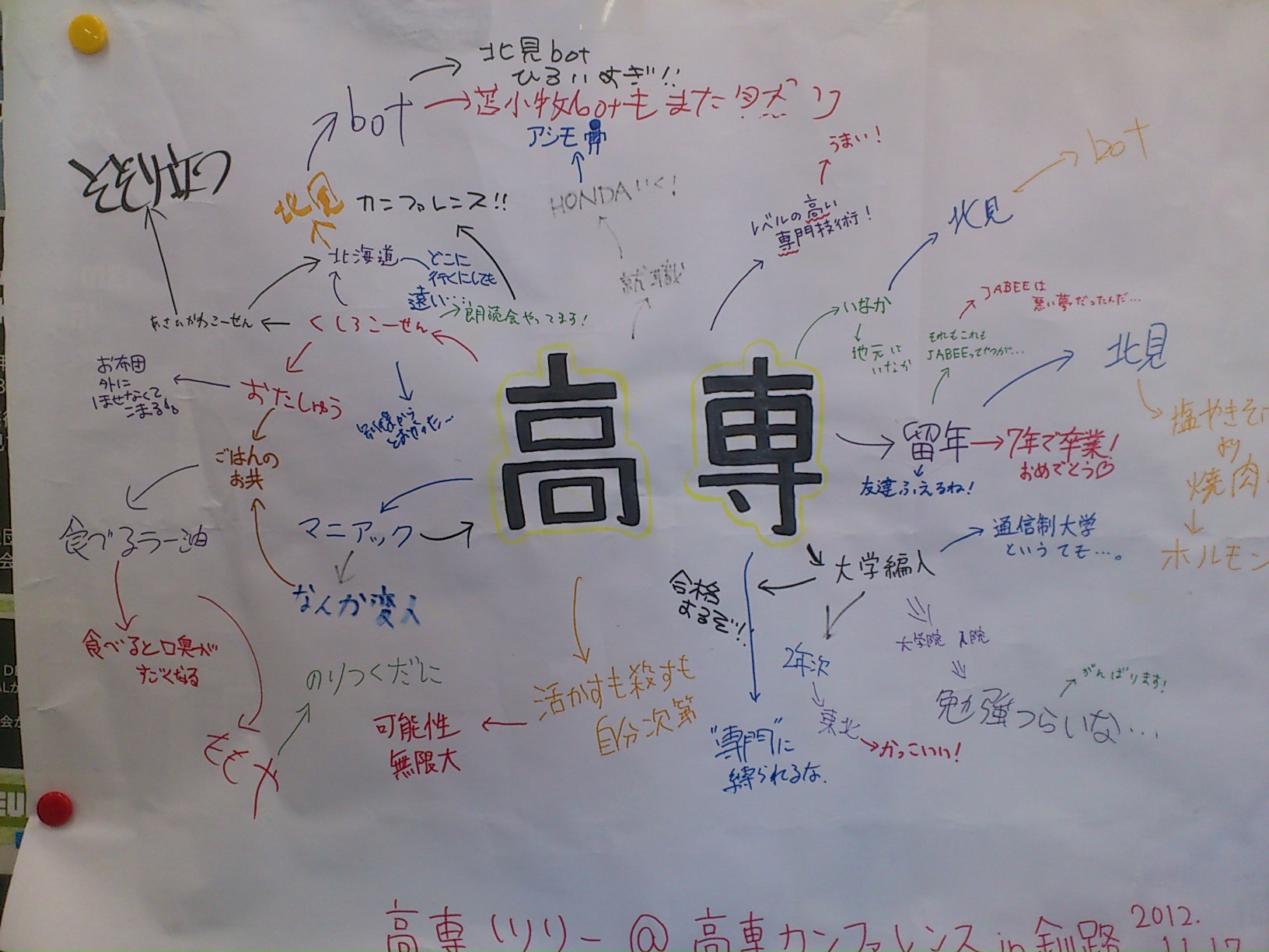 - 模造紙1枚の真ん中に高専と書いておくので自由に書き込んでください!